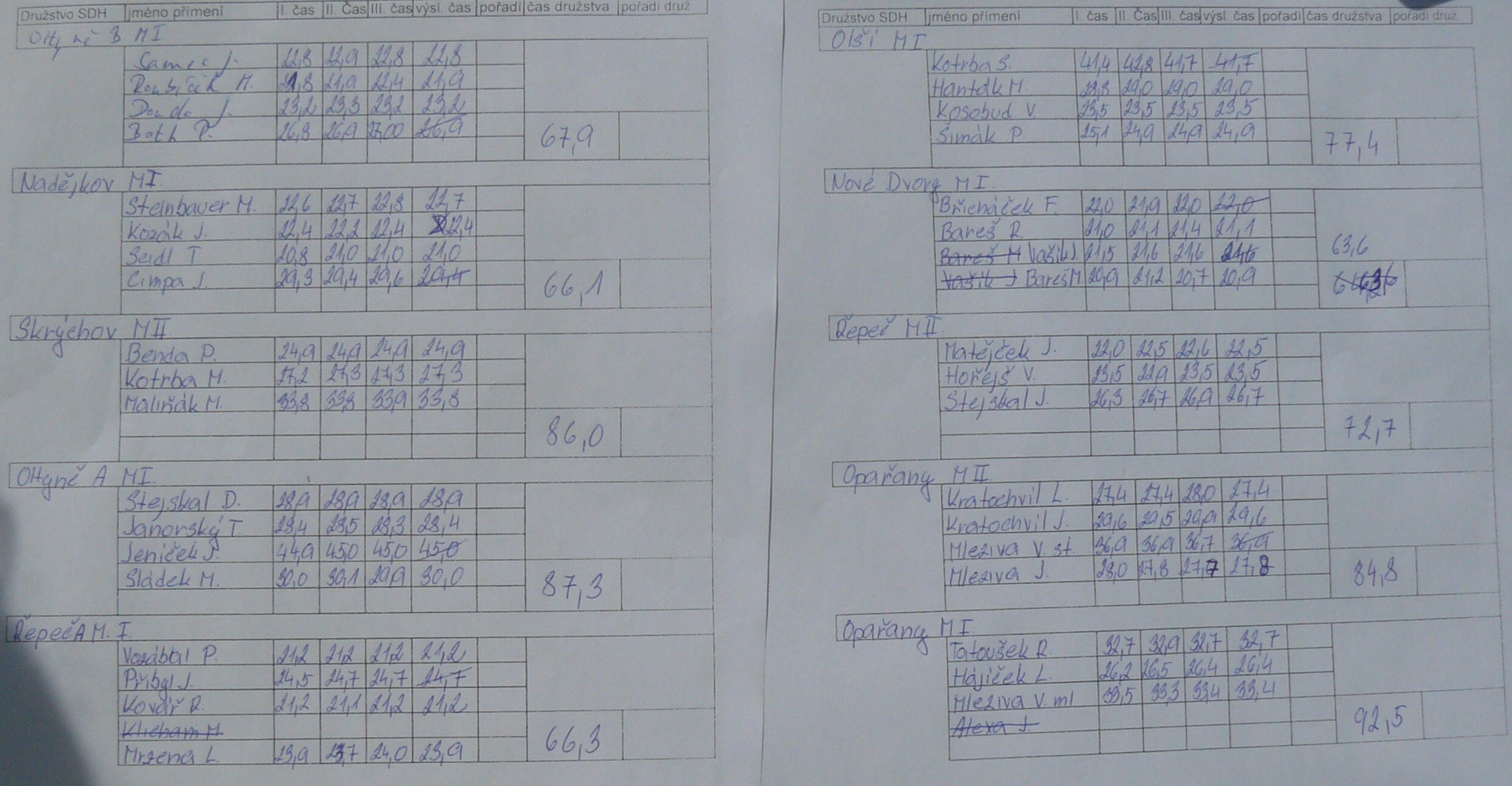 Mezitím se družstvo mužů připravovalo na běh 100m, který se nám oproti minulým letům povedl. Dosáhli jsme výsledného času 66,3 s. Po štafetě jsme se šli připravovat na požární útok. Ze začátku vše vypadalo na velmi slušný útok, ale po malém zaváhání pravého proudaře se časomíra zastavila na čase 25,0. I přes velkou snahu se nám nepodařilo vyhrát a odvezli jsme 2. místo.