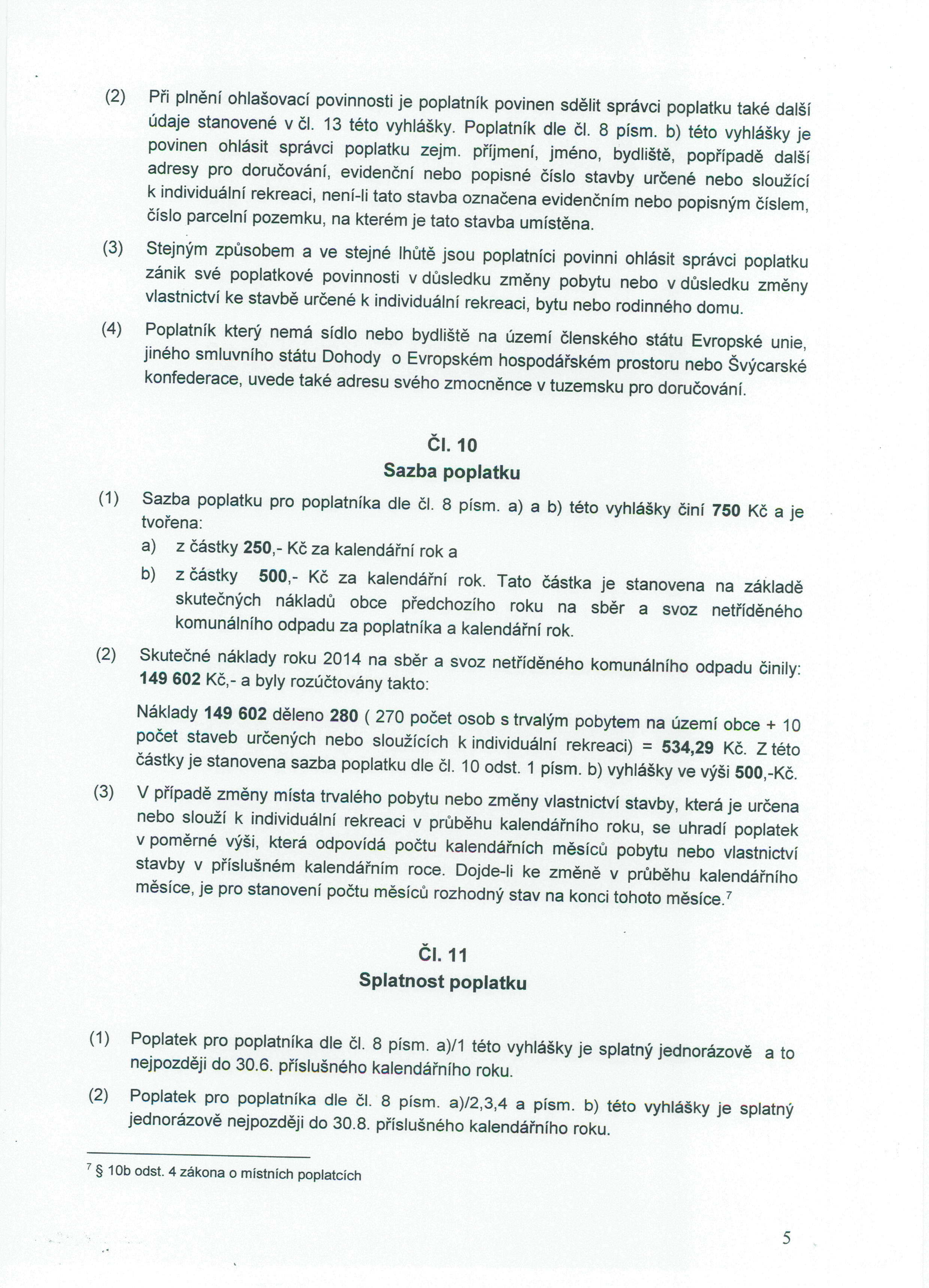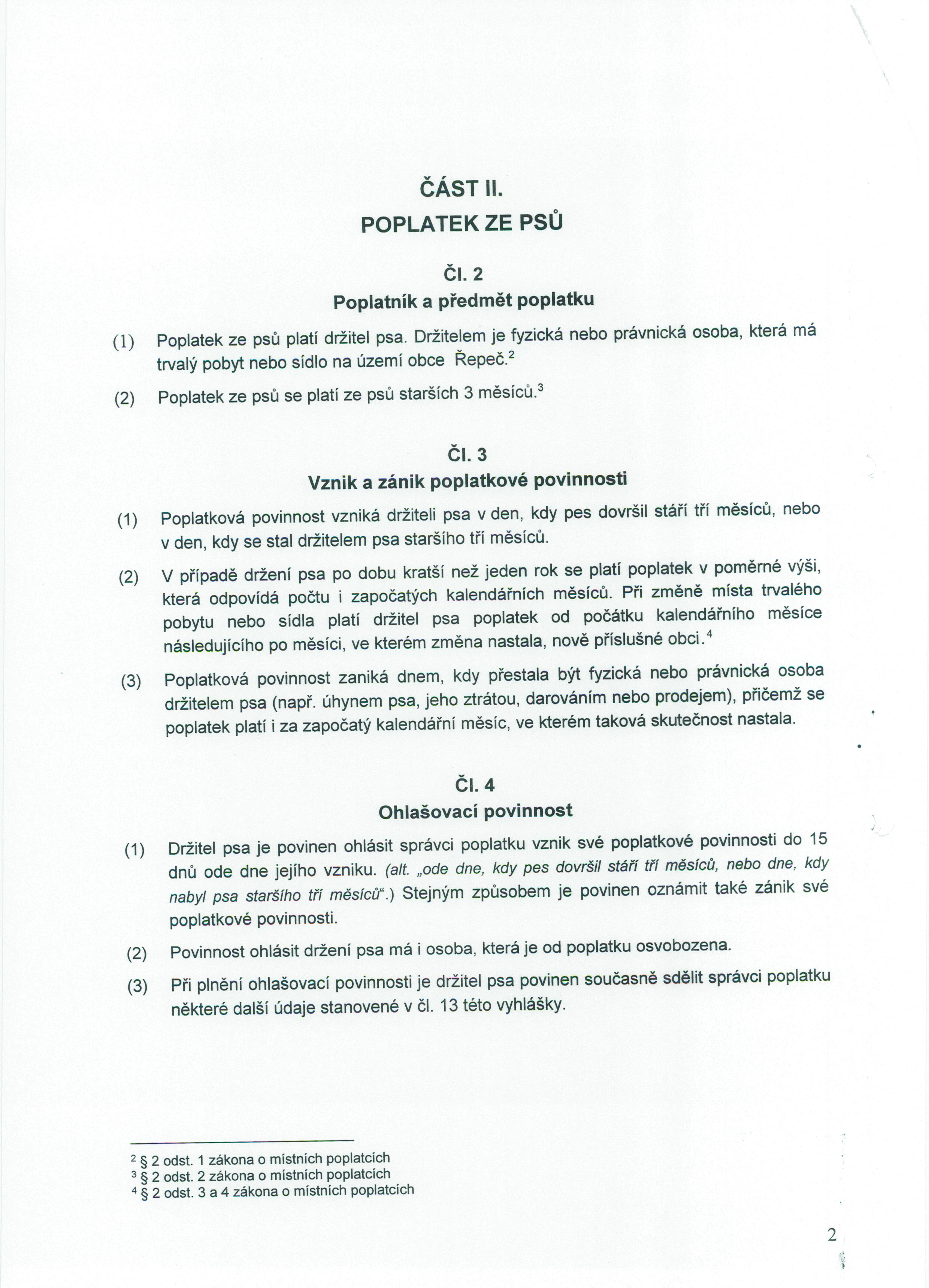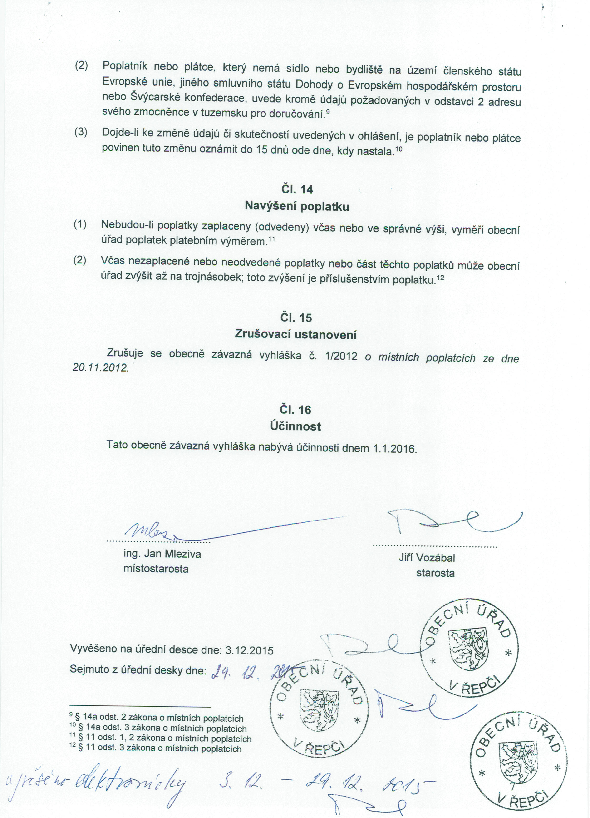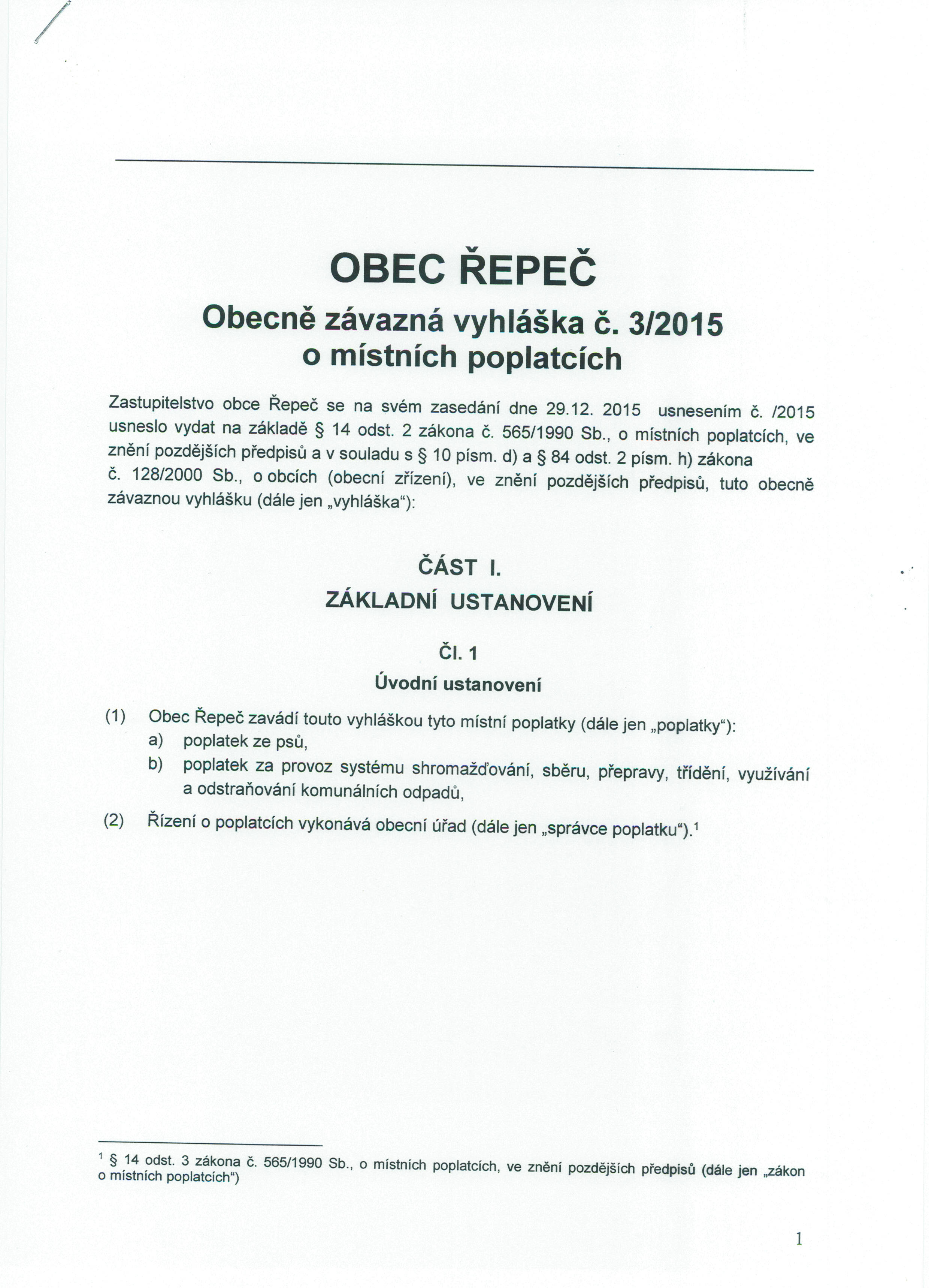 Obecně závazná vyhláška upravující výši a způsob úhrady místních poplatků v obci Řepeč.