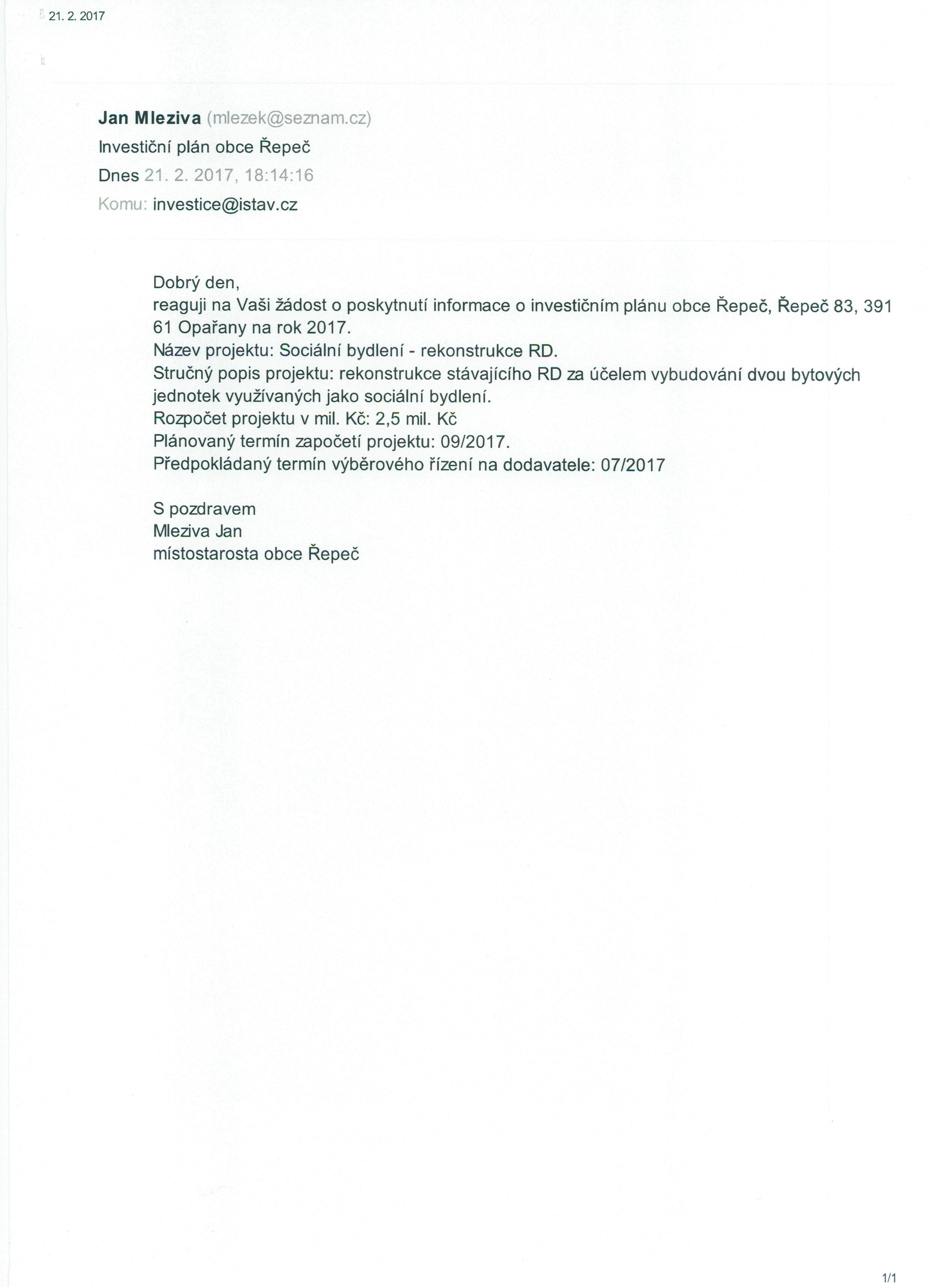 Poskytnutí informace na základě žádosti č.j.RE/2017/217