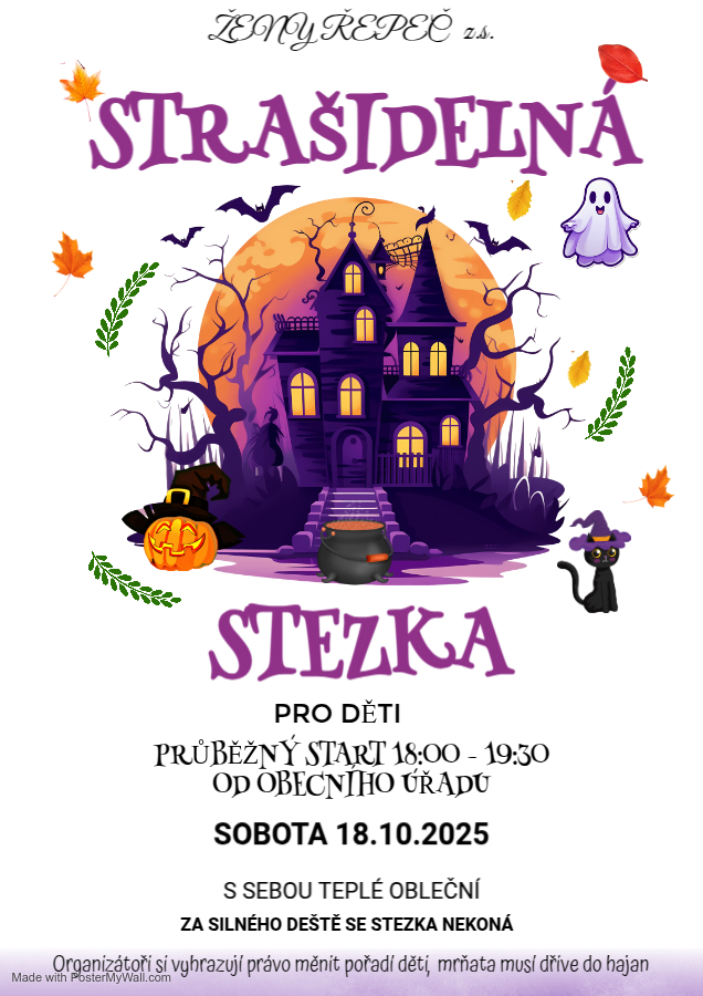 Svaz žen v Řepči Vás srdečně zve na strašidelnou stezku, která se koná v pátek 18.10.2025 od 18 hodin.